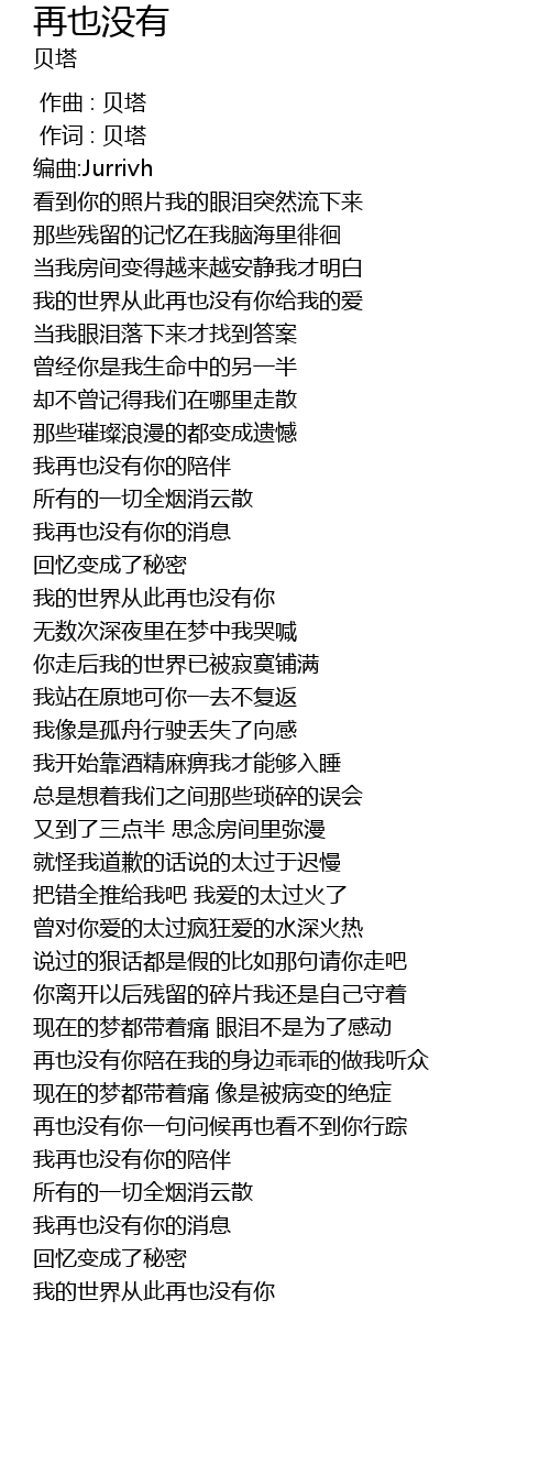 | [00:47.58] | 我的世界从此再也没有你给我的爱 |