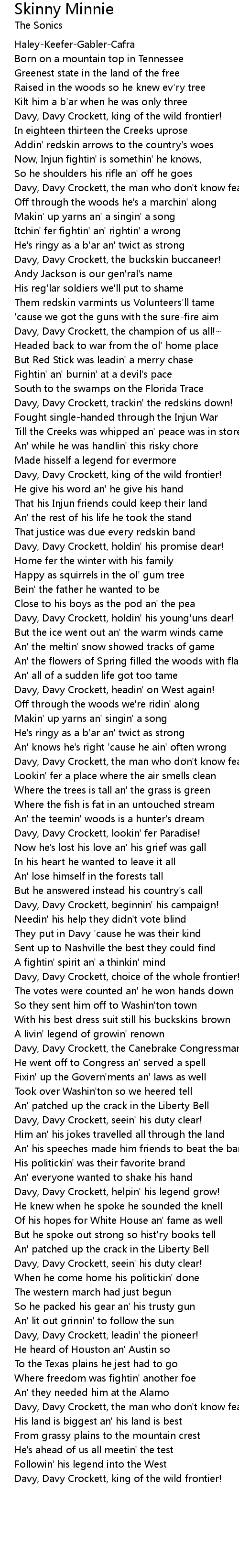 Davy, Davy Crockett, the Canebrake Congressman! |