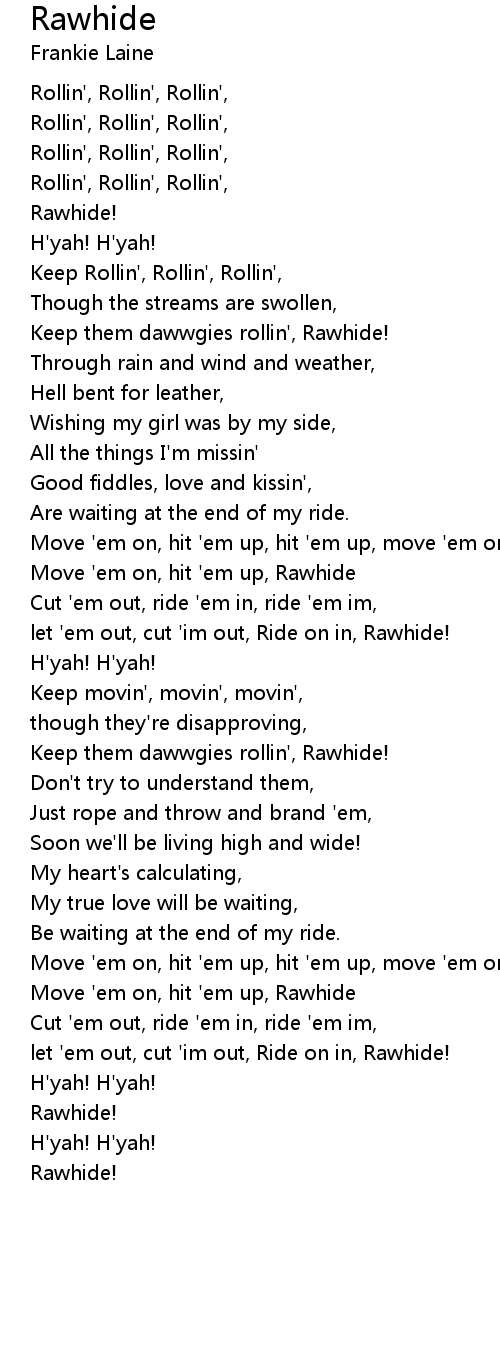 let 'em out, cut 'im out, Ride on in, Rawhide!