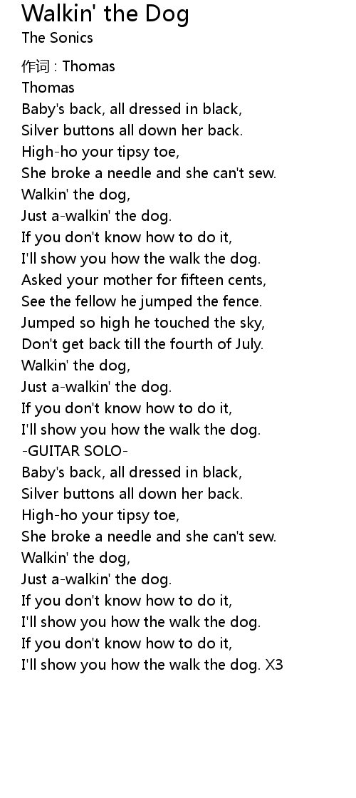 | Walkin' the dog, | |