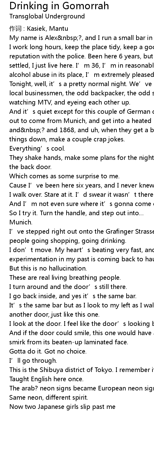 | Song | Drinking in Gomorrah |