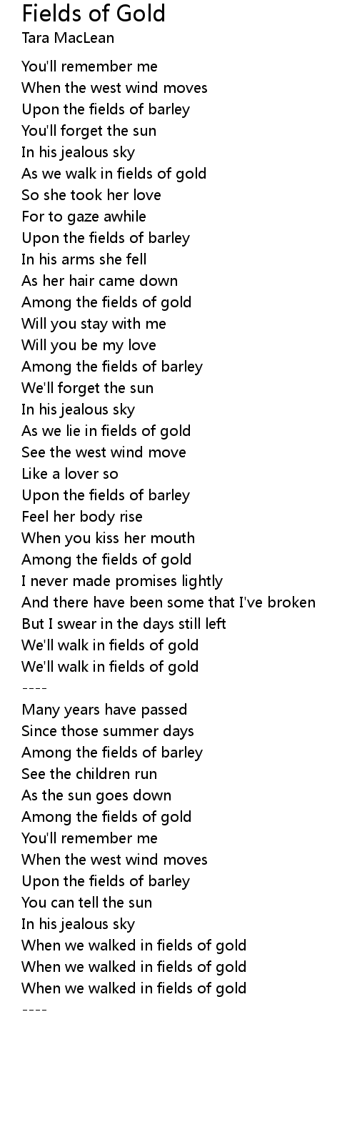 As we lie in fields of gold |