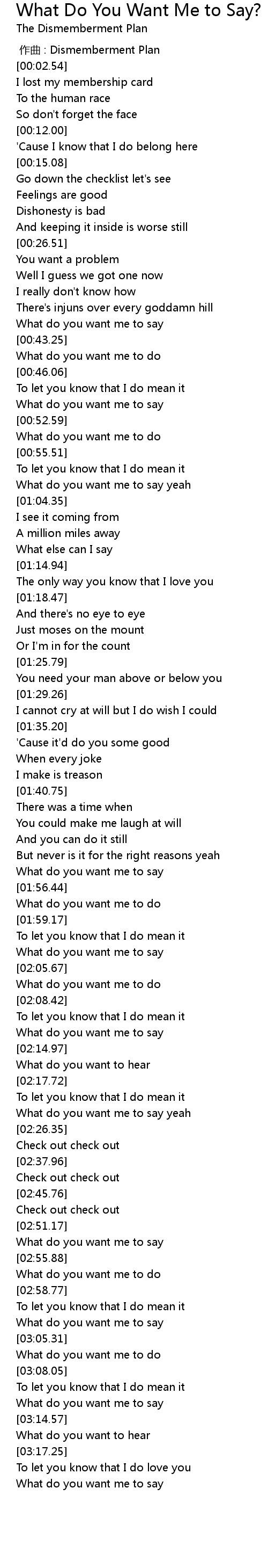 | [00:00.00] | zuò qǔ : Dismemberment Plan |