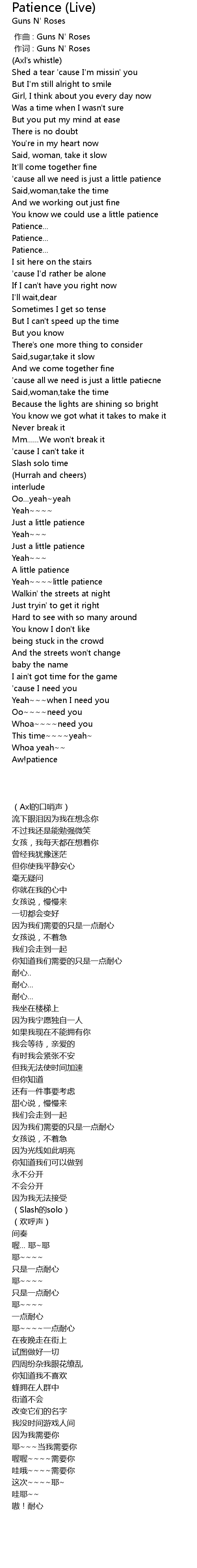 | [00:00.000] | 作词 : Guns N' Roses |