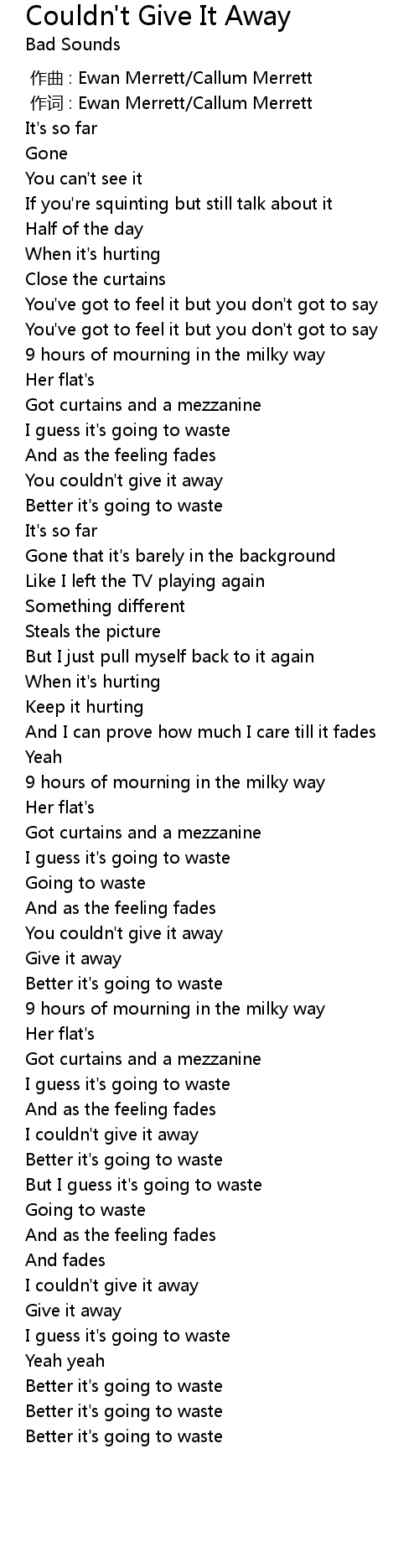 | [00:01.000] | 作词 : Ewan Merrett/Callum Merrett |