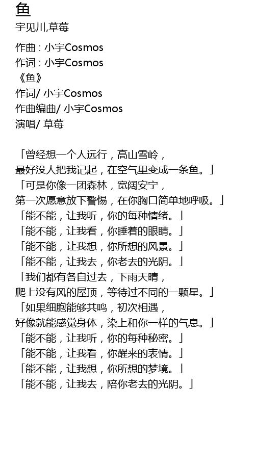 | 最好没人把我记起,在空气里变成一条鱼。」 | |
