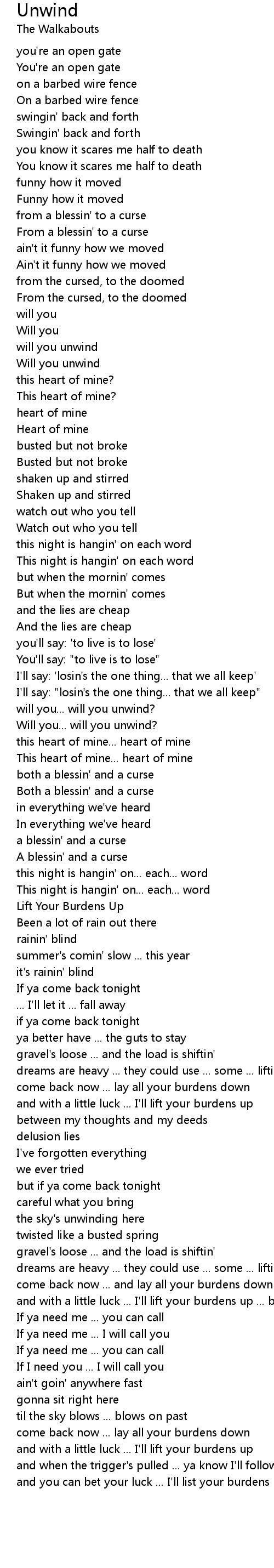 and with a little luck ... I'll lift your burdens up ... burdens up