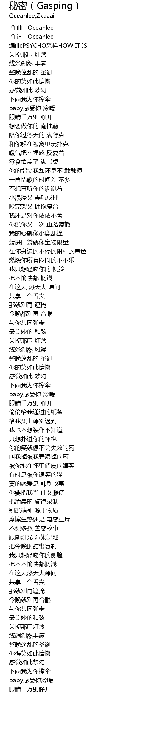 | [00:00.010] | 作词 : Oceanlee |