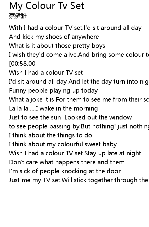 | [01:09.74] | Wish I had a colour TV set |