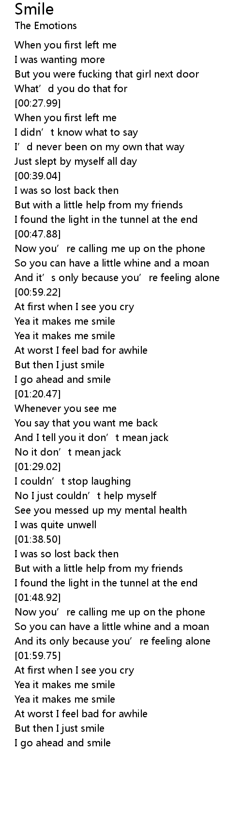 | [01:15.16] | But then I just smile |