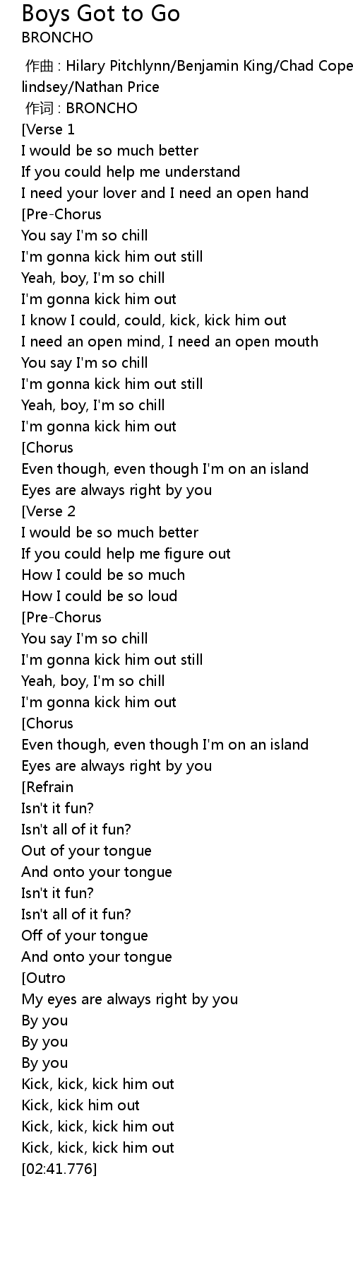 | [00:17.041] | Yeah, boy, I' m so chill |