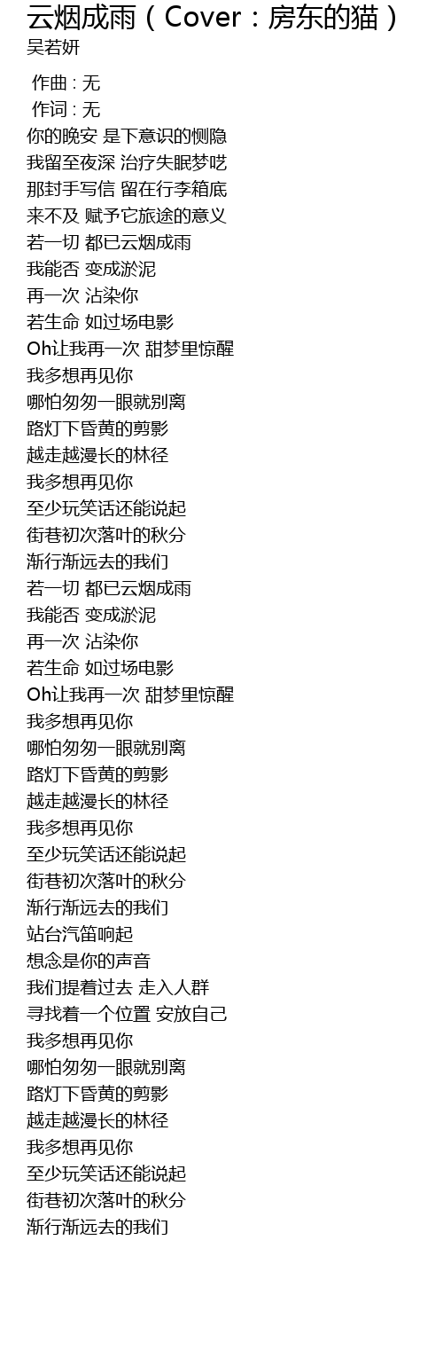 | [00:44.23] | 若一切 都已云烟成雨 |