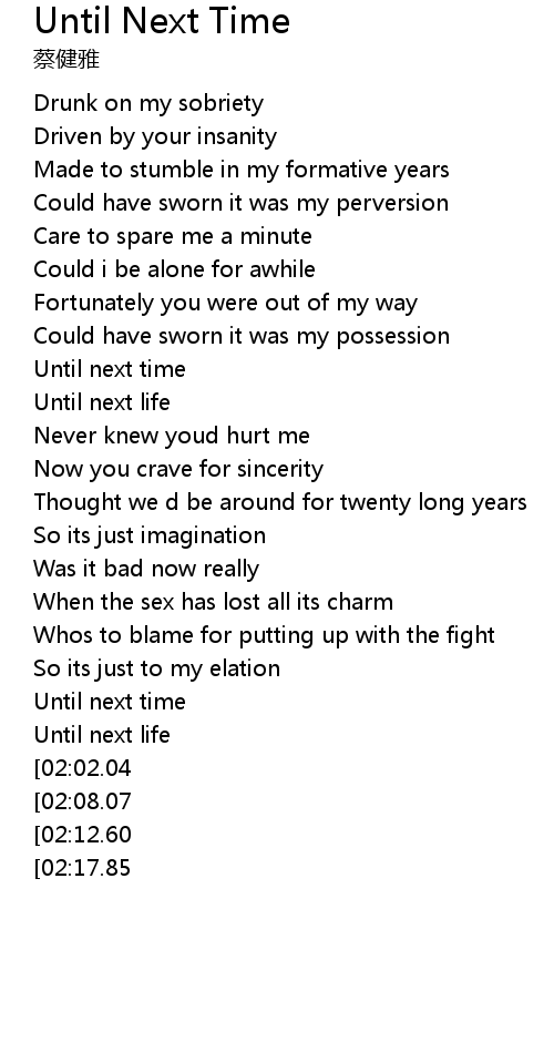 | [02:58.36][02:17.85] | Until next time |