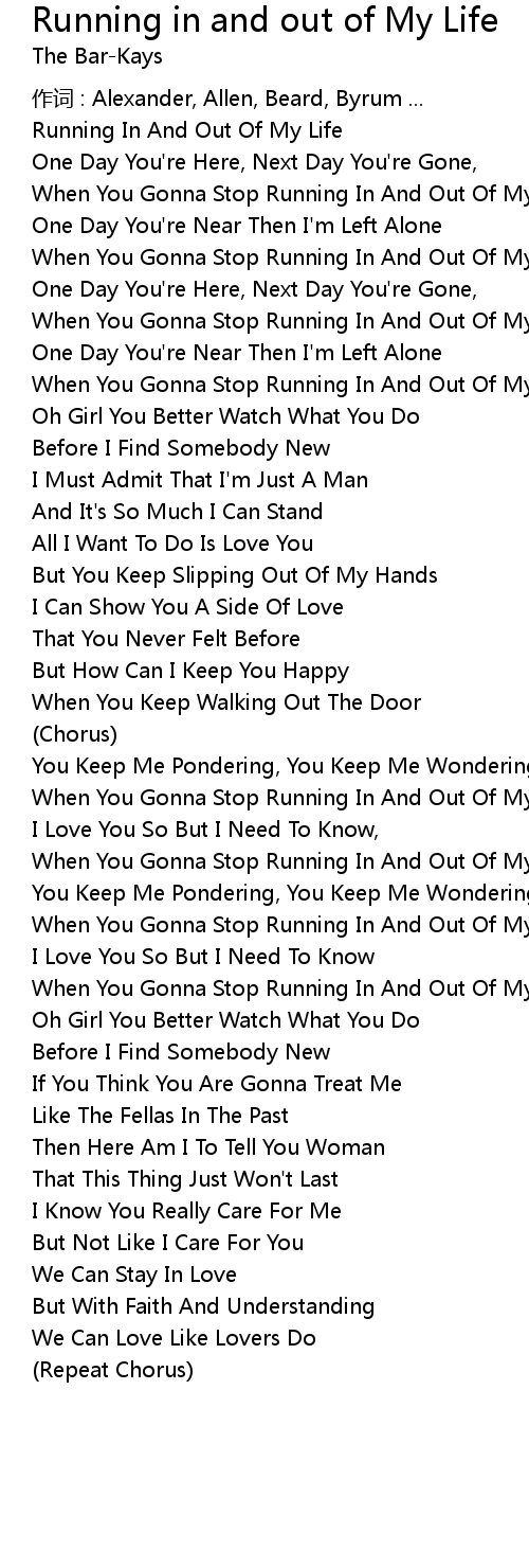 | Running In And Out Of My Life | |