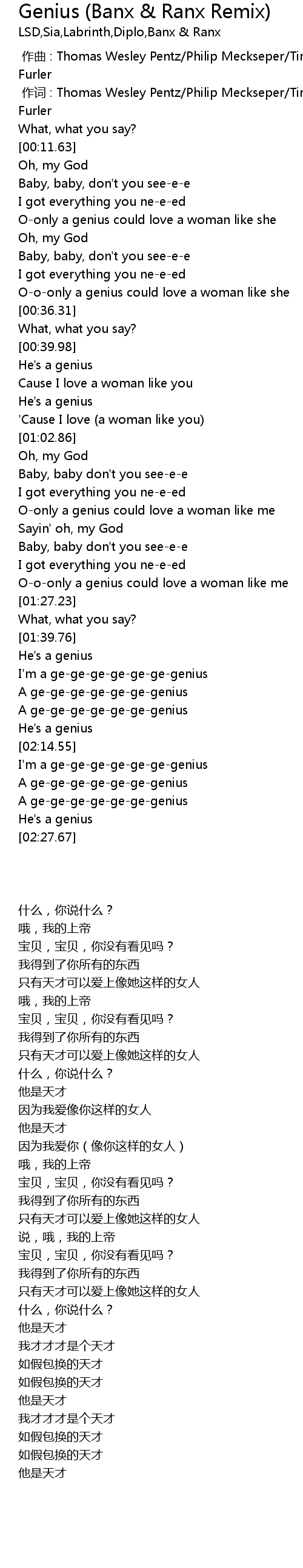 | [02:15.94] | I' m a gegegegegegegenius |