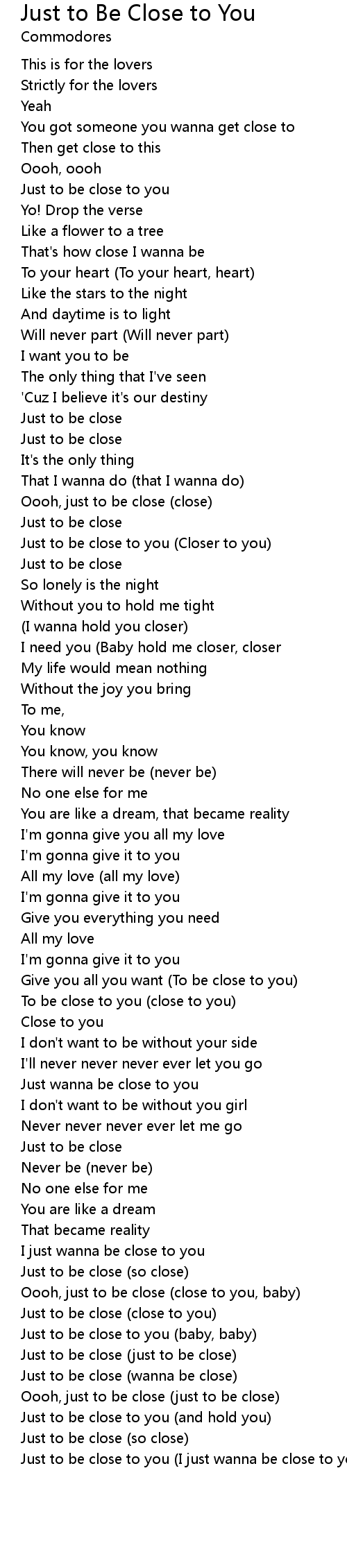 Just to Be Close to You Lyrics
