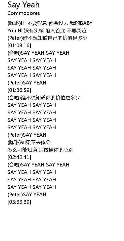 | [02:19.62] | SAY YEAH SAY YEAH |