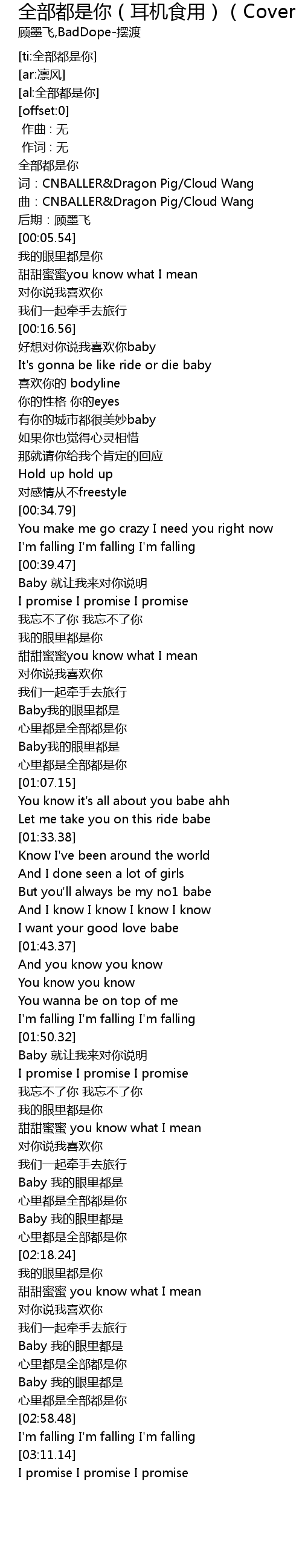 | [00:02.20] | 词:CNBALLER&Dragon Pig/Cloud Wang |