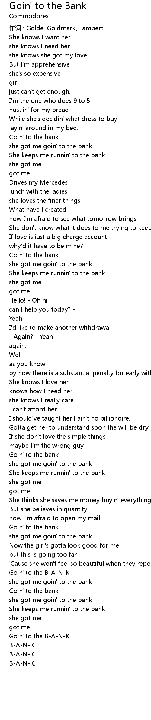 | ' Cause she won' t feel so beautiful when they repossess my car. | |