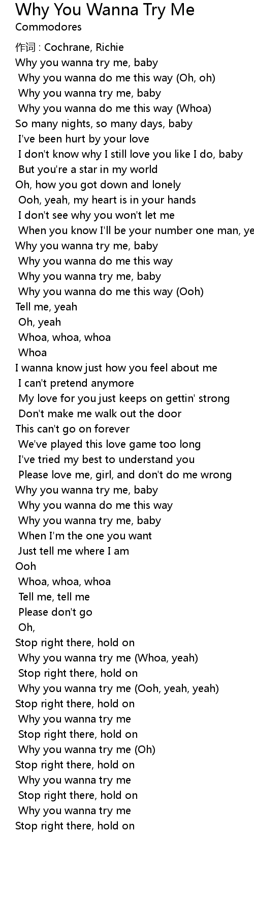 | Why you wanna try me (Ooh, yeah, yeah) | |