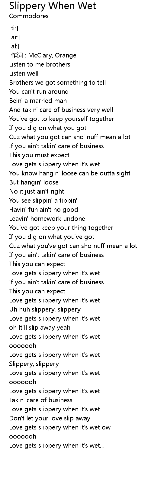 | [00:52.53] | Love gets slippery when it's wet |