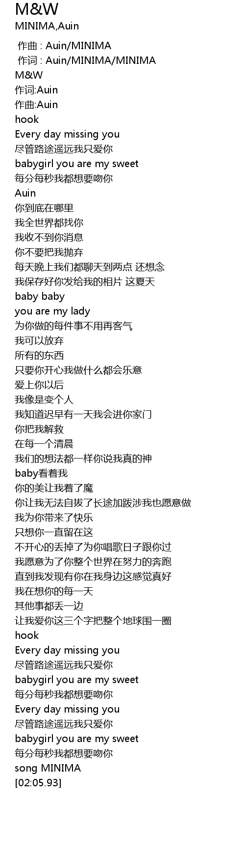 | [00:00.019] | 作词 : Auin/MINIMA/MINIMA |