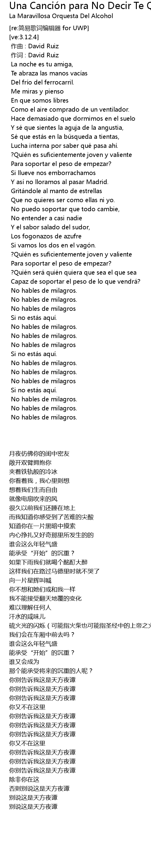 | [01:18.48] | Y asi no lloramos al pasar Madrid. |