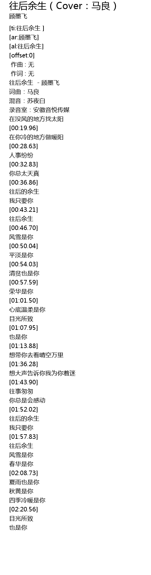 | [00:00.21] | 往后余生 - 顾墨飞 |