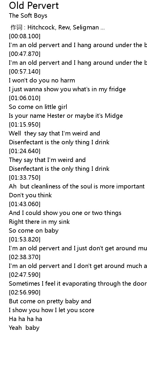 | [00:49.810] | I' m an old pervert and I hang around under the bridge |