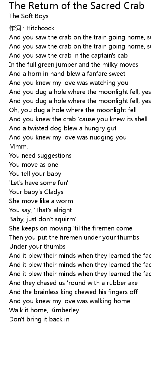 | And you knew the crab 'cause you knew its shell | |