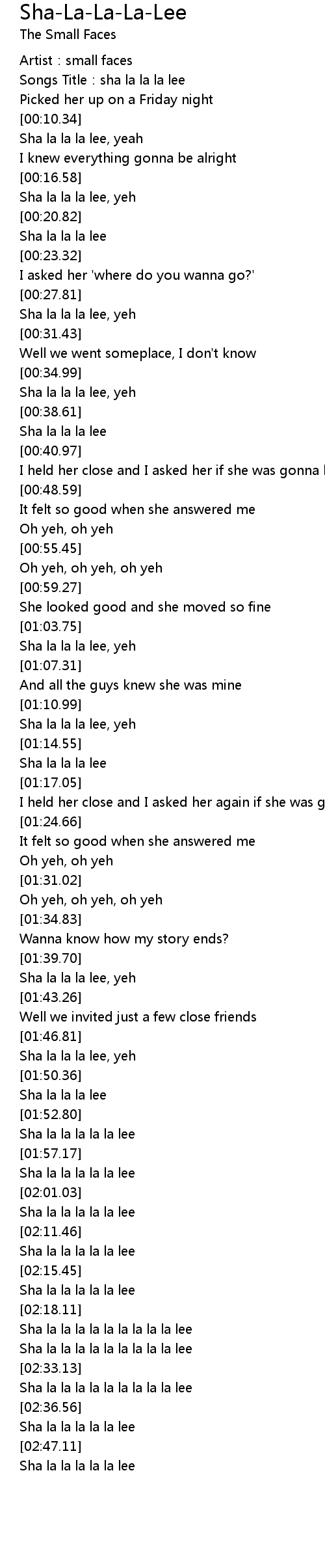 | [02:33.64] | Sha la la la la la la la la la lee |