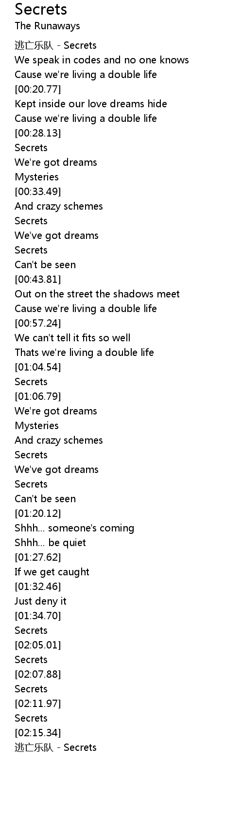 | [00:01.76] | 逃亡乐队 - Secrets |