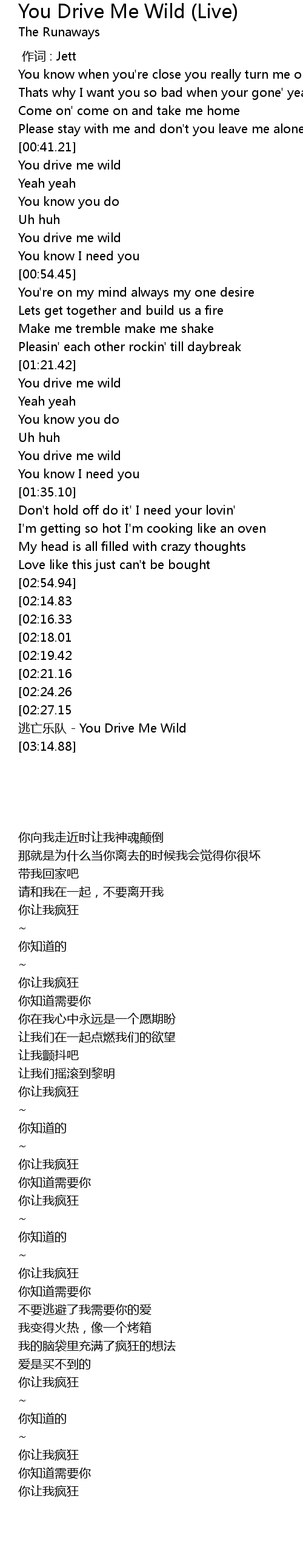 | [03:01.45][02:21.16] | You drive me wild |