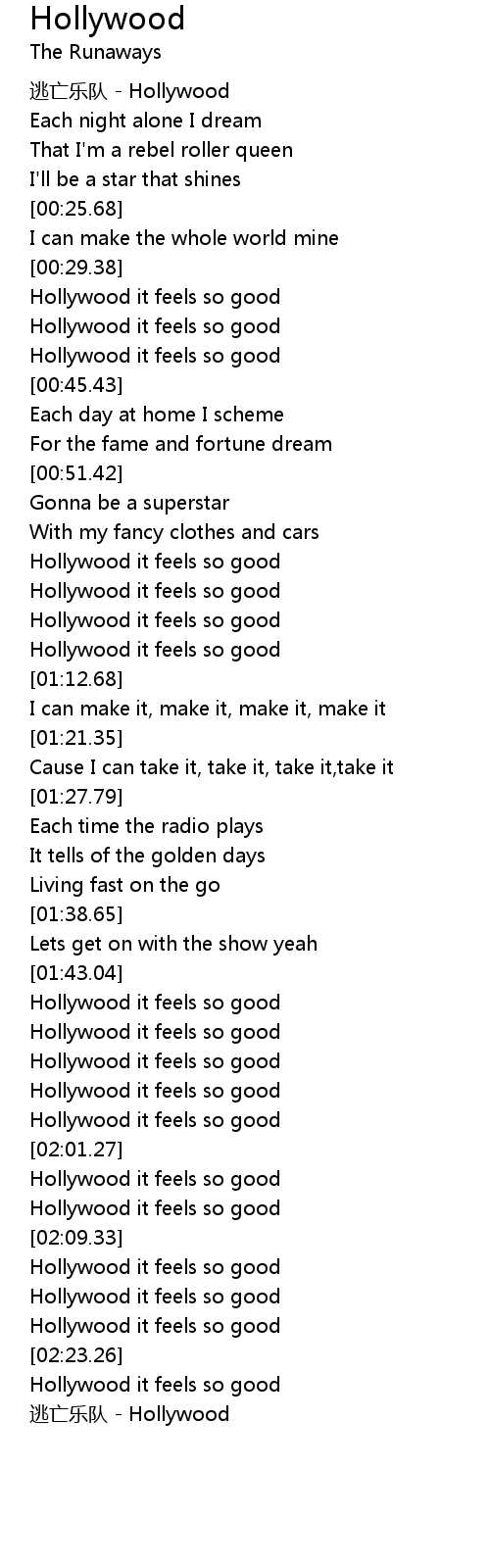 | [01:43.72] | Hollywood it feels so good |