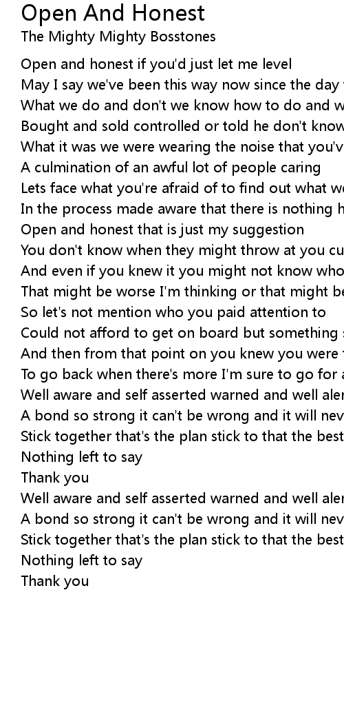 Open and honest that is just my suggestion |