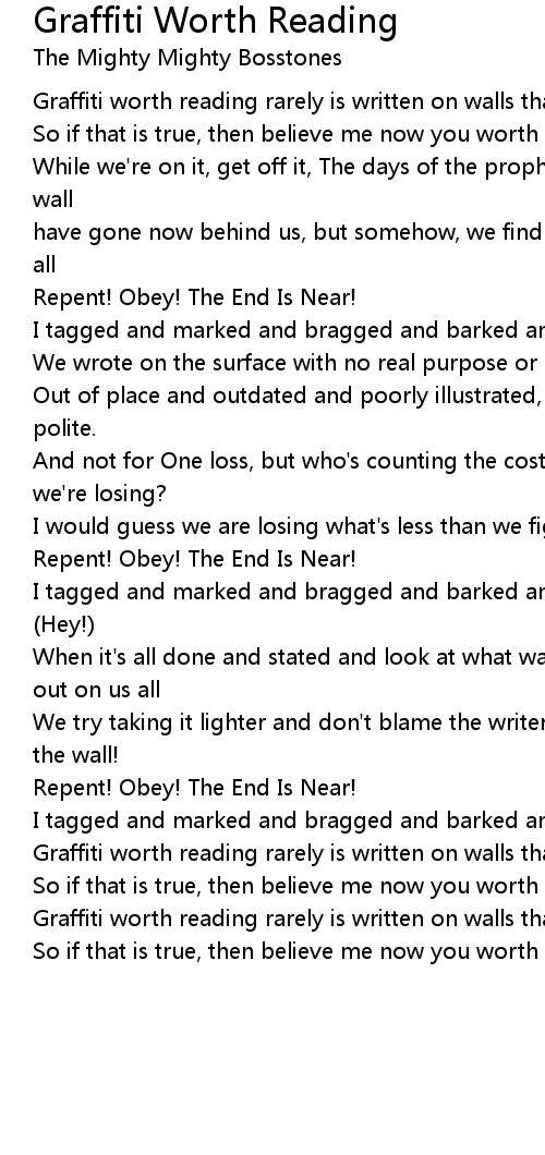 So if that is true, then believe me now you worth reading graffiti is gone |