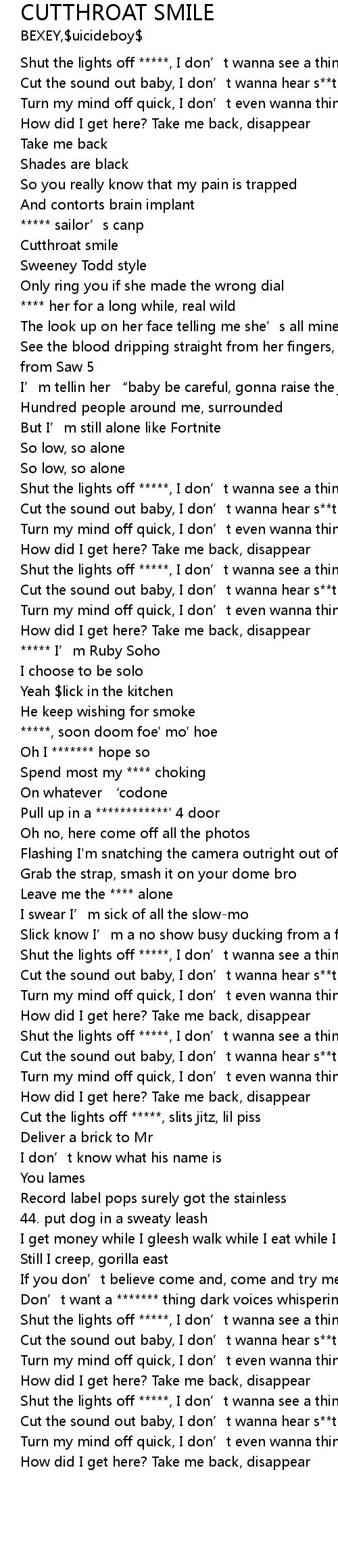 | [02:10.41] | Cut the lights off *****, slits jitz, lil piss |
