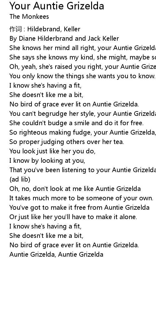 | You can' t begrudge her style, your Auntie Grizelda, | |