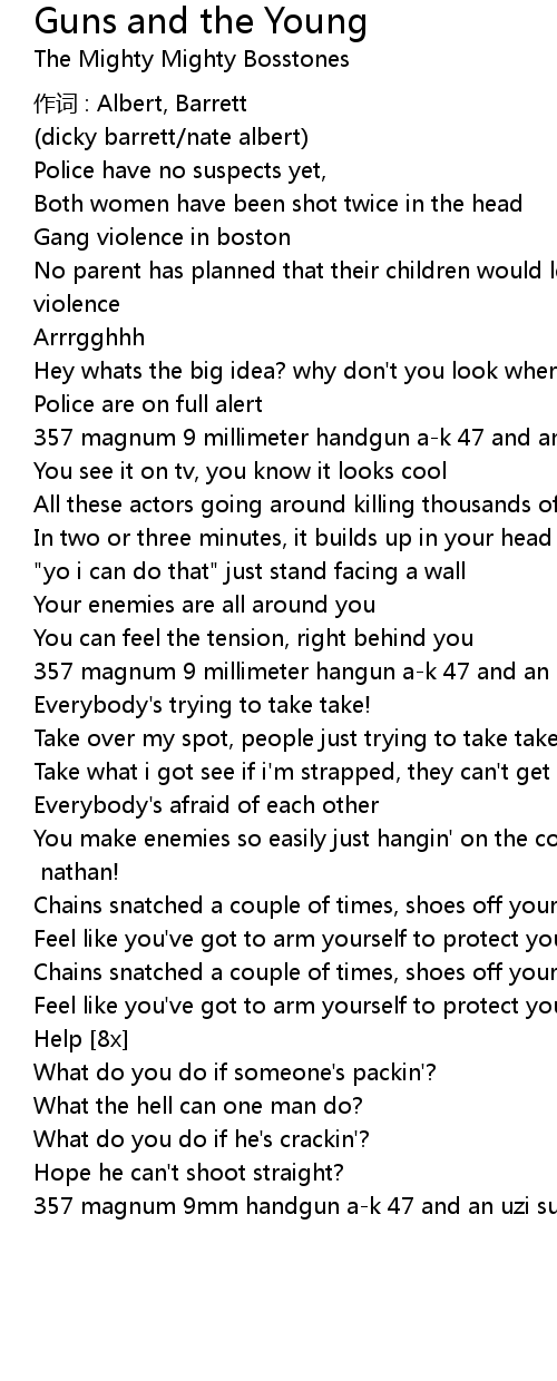 | [4x] | 357 magnum 9 millimeter handgun ak 47 and an uzi sub machine gun |