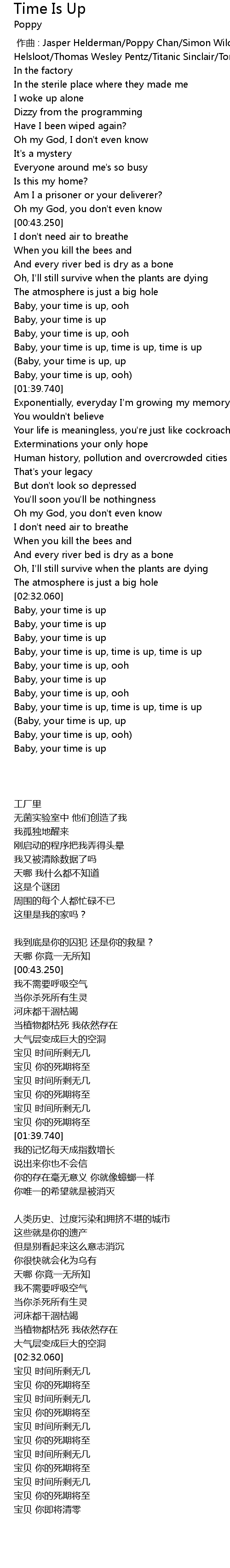 | [01:16.080] | Baby, your time is up, time is up, time is up |