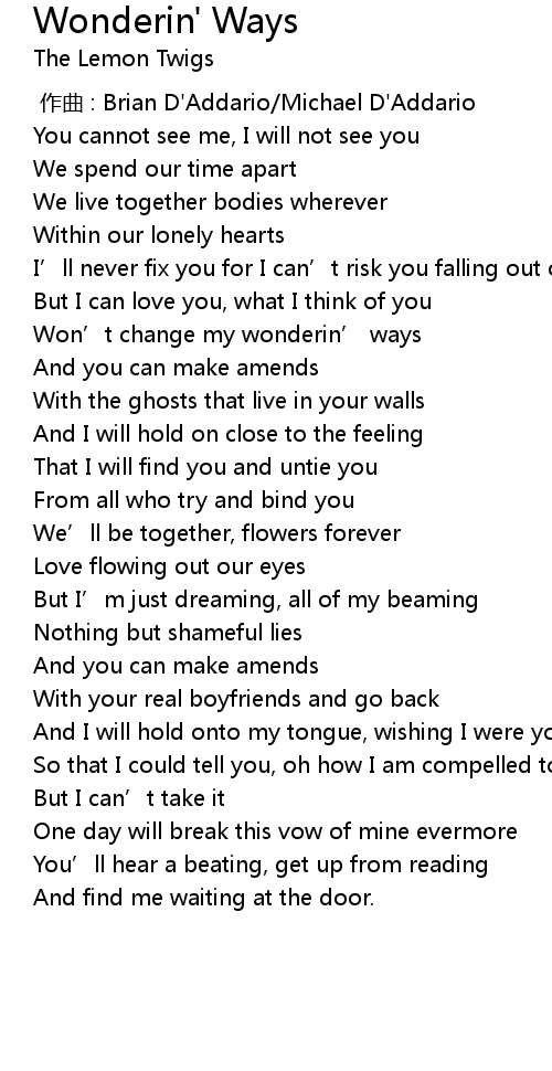 | [00:48.66] | Won’t change my wonderin’ ways |