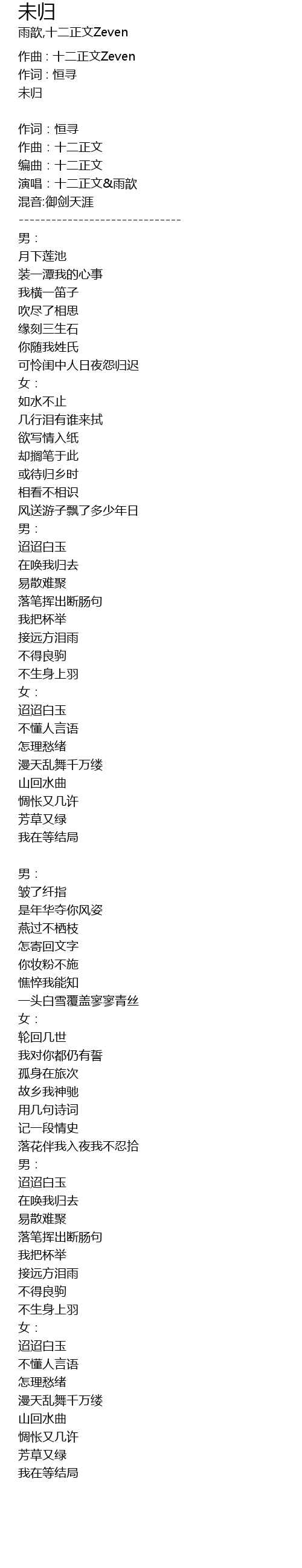 | 作词:恒寻 | |