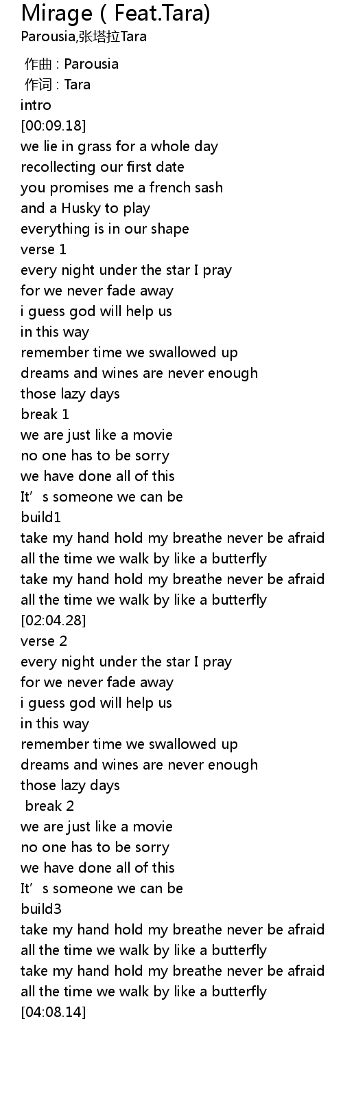 | [00:01.000] | 作词 : Tara |
