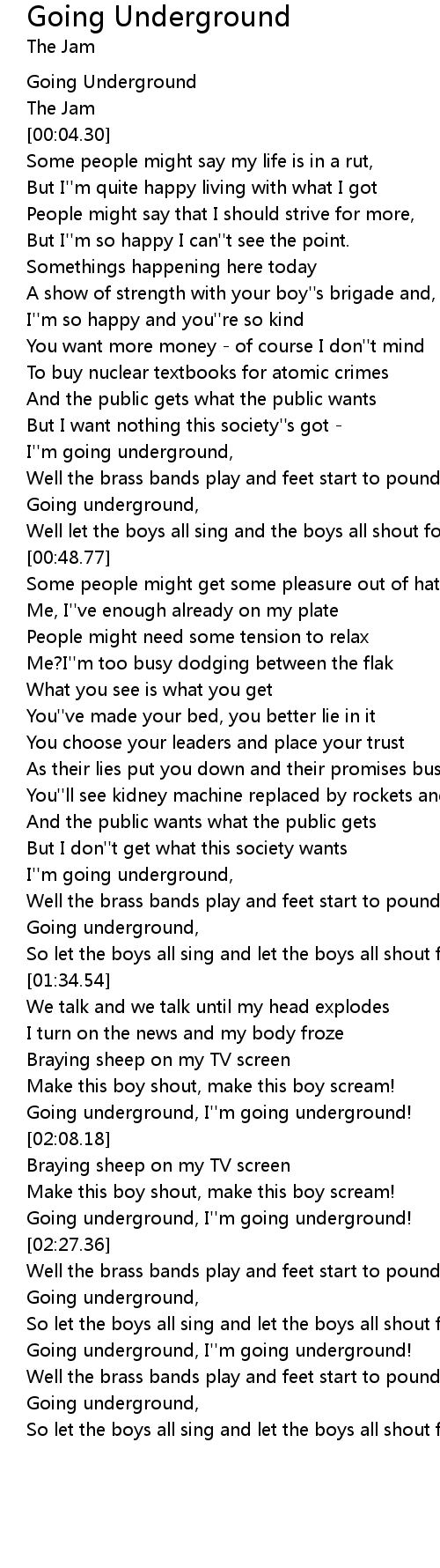 I''m going underground, |