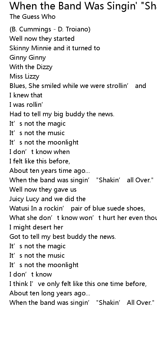 | Song | When the Band Was Singin' "Shakin' All Over" |