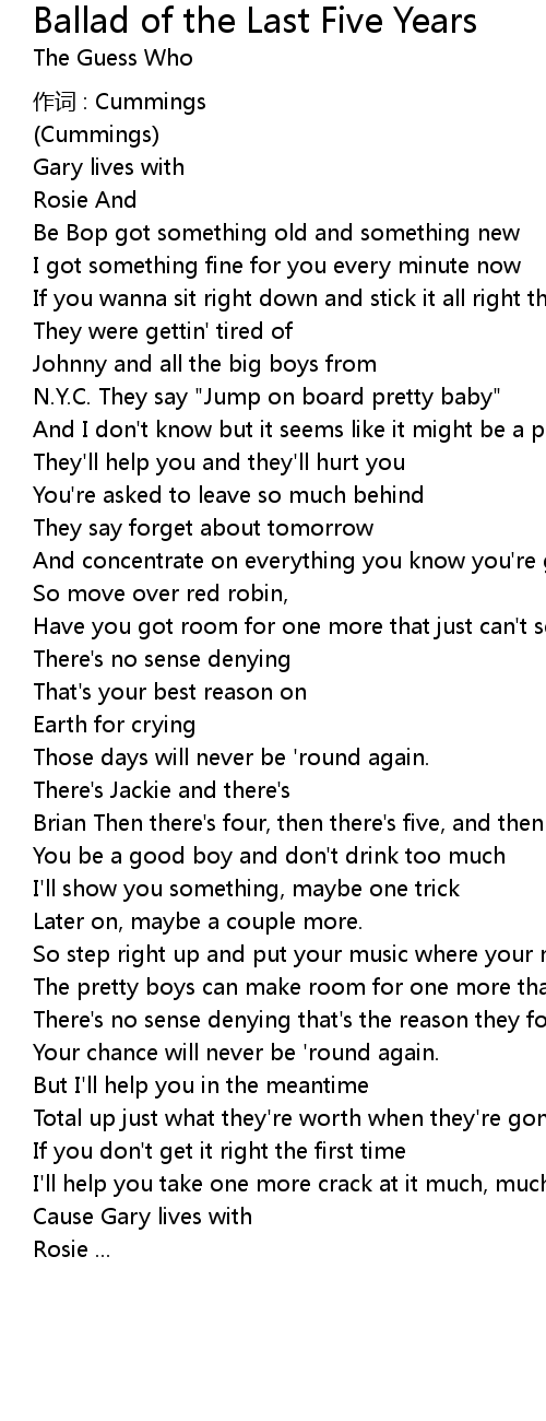 | Song | Ballad of the Last Five Years |