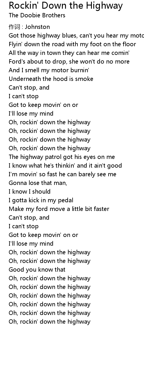 | Oh, rockin' down the highway |