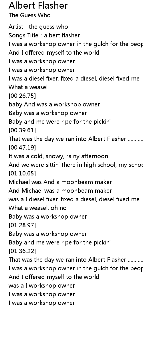 | [00:02.41] | Songs Title: albert flasher |