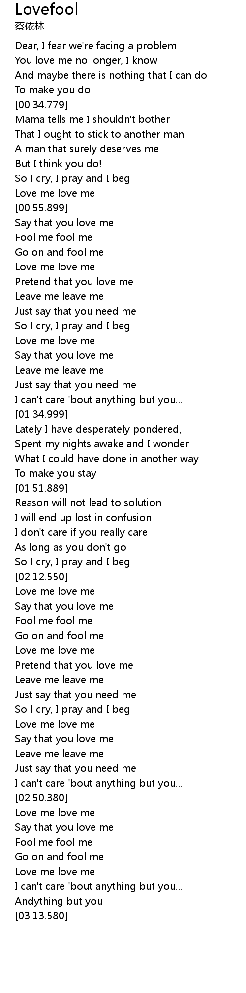 | [02:56.360] | Go on and fool me |