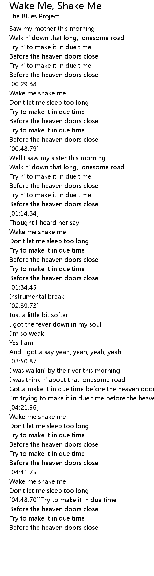 Wake me shake me |